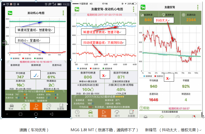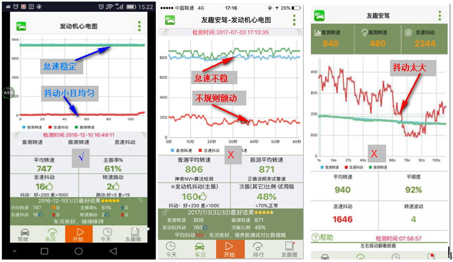 友趣安駕APP,正是利用手機(jī)聲音傳感器,代替人的耳朵,聽出發(fā)動(dòng)機(jī)的怠速轉(zhuǎn)速,利用運(yùn)動(dòng)傳感器,測出發(fā)動(dòng)機(jī)的振動(dòng),用NVH技術(shù),分析聲振數(shù)據(jù),如實(shí)展示了汽車的運(yùn)轉(zhuǎn)過程,汽車健康與否,一看就知道。