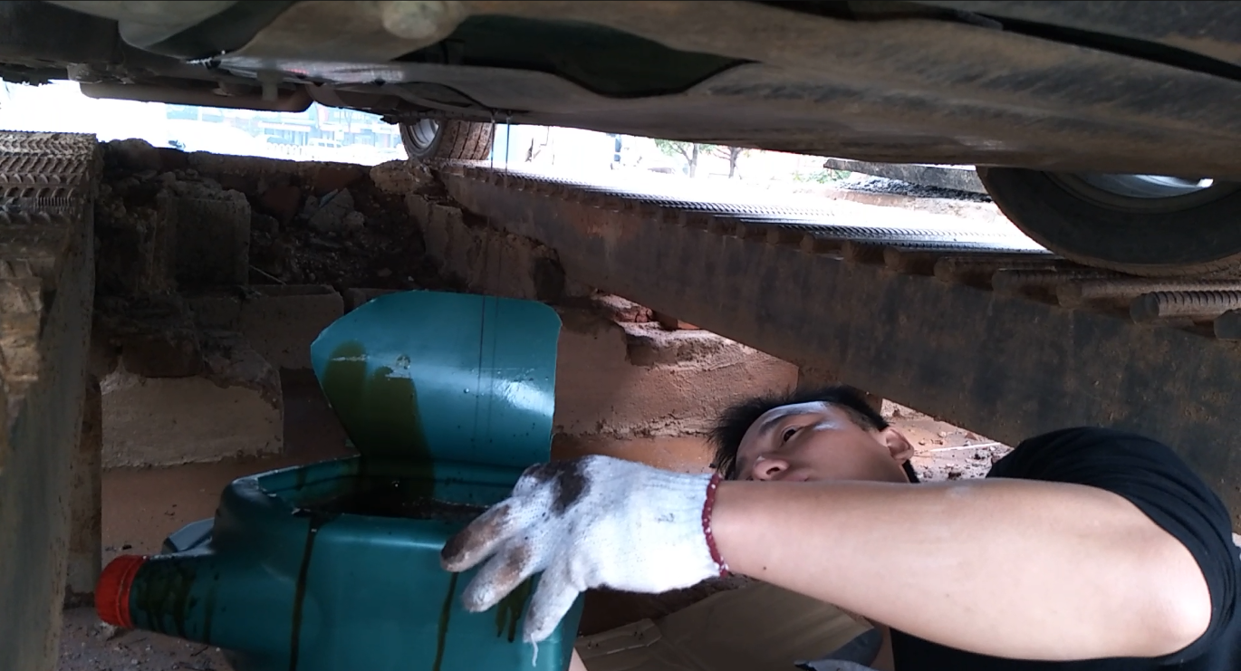 老司機(jī)為了省錢,自己買機(jī)油跑工地做保養(yǎng),這也夠拼了
